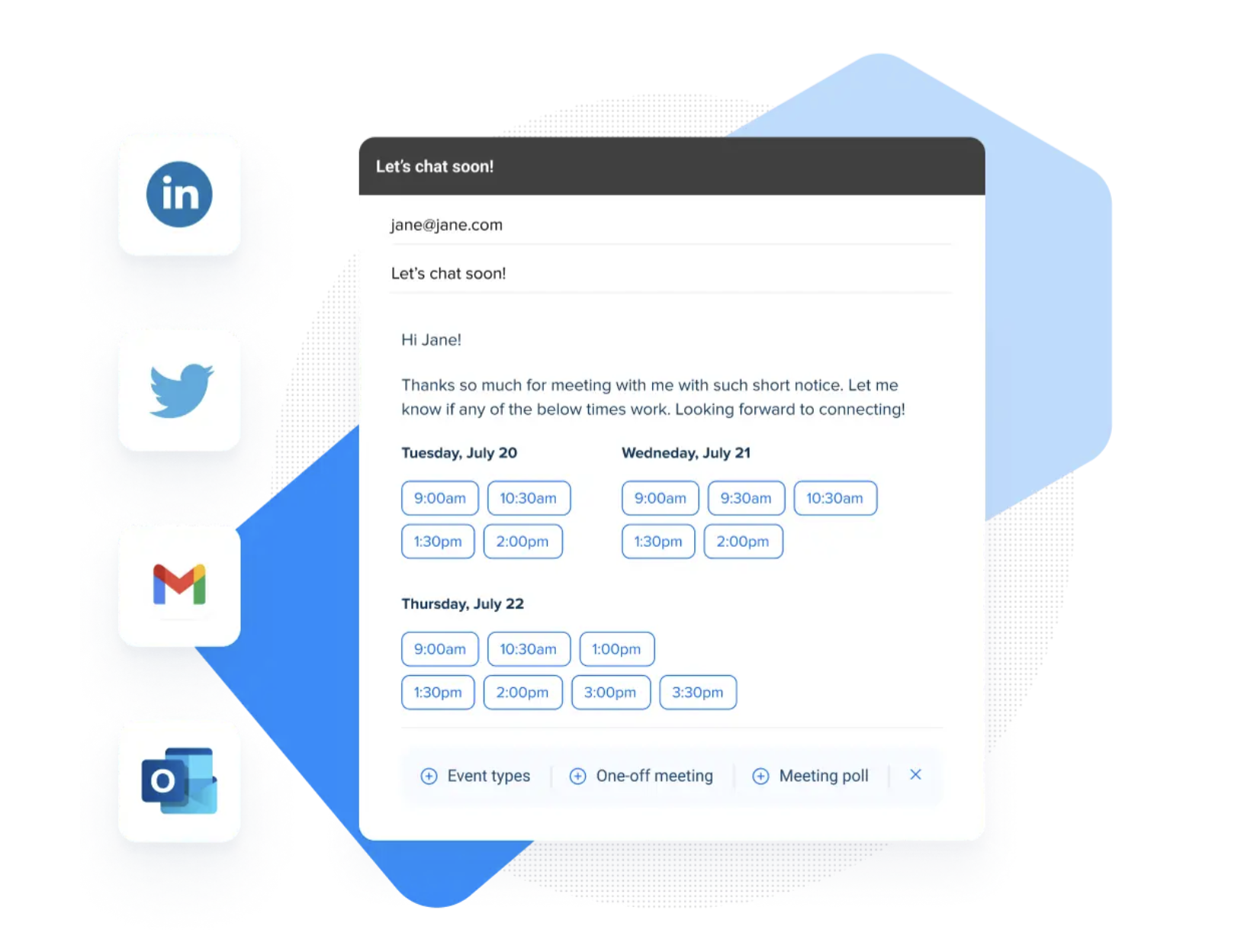 Eliminate double bookings with intelligent scheduling that cross-checks all your calendars. Calendly only shows available appointment times and never exposes your calendar contents to invitees.